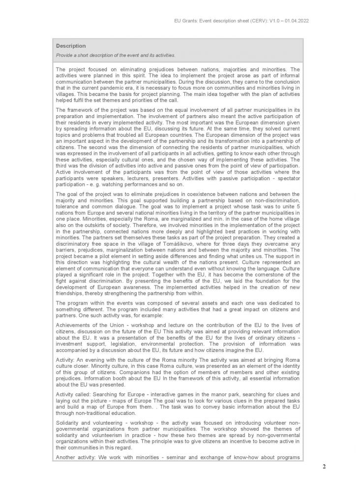 Event description sheet