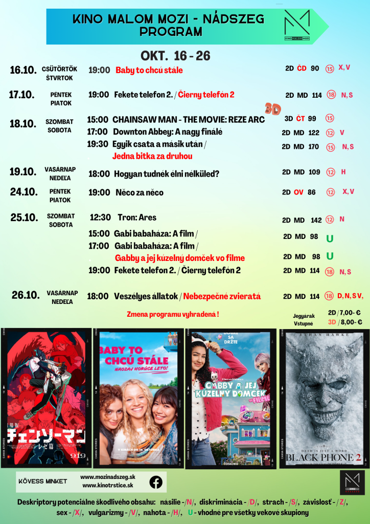 KINO MALOM MOZI NÁDSZEG (TRSTICE) - PROGRAM