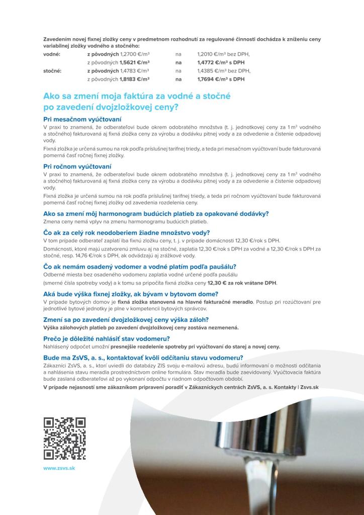 Západoslovenská vodárenská spoločnosť, a. s. - Zavedenie dvojzložkovej ceny
